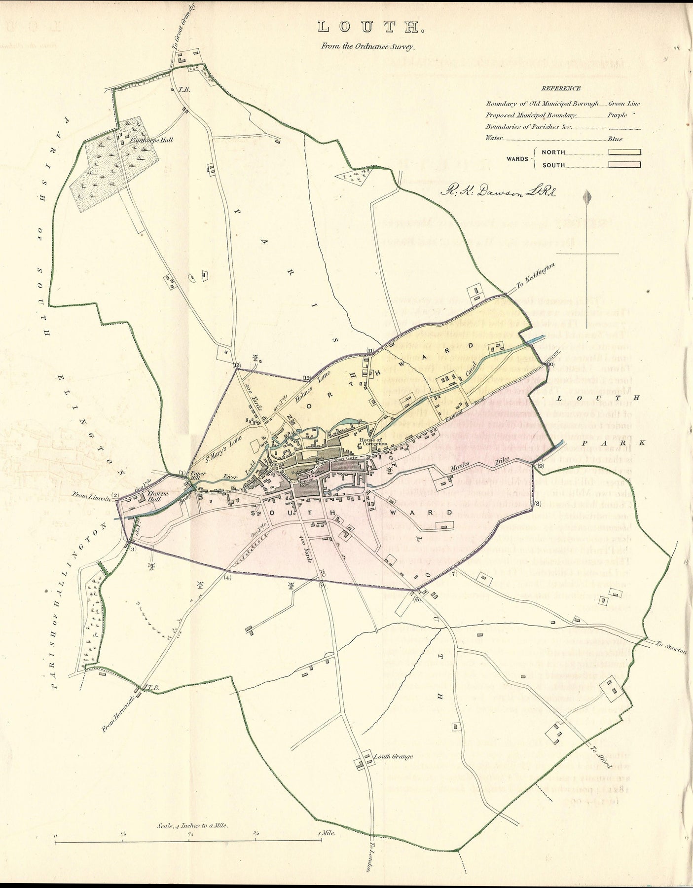 Louth Lincolnshire Ordnance Survey 1837 Boundary Commission antique map